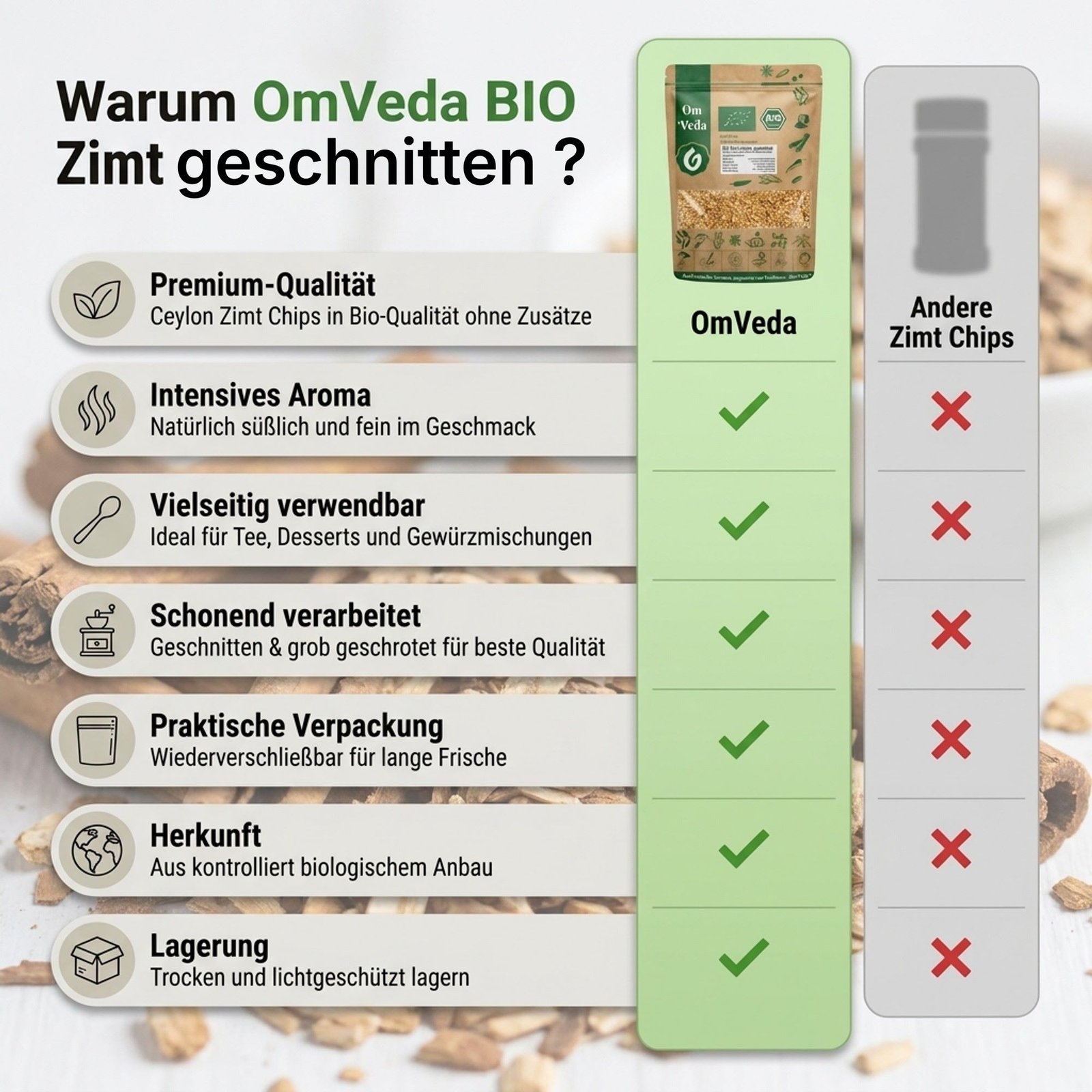 • Fein-süßes, warmes Zimtaroma mit sanfter Note
